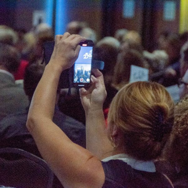 - Emcee Andy Zodin recognizes inductees, guests, sponsors and organizers