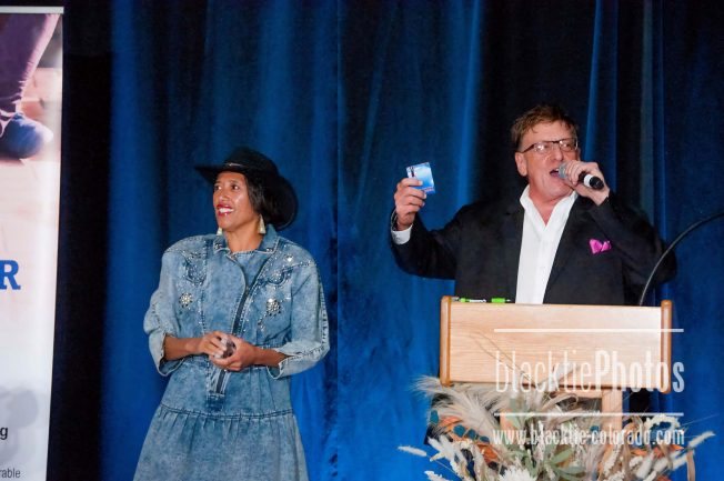 Brandi Shigley-McMichael assists Auctioneer Jim Berz during live auction