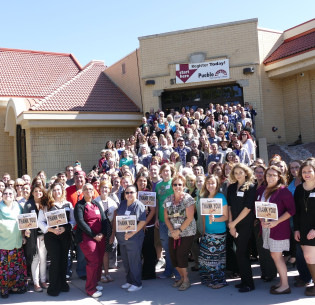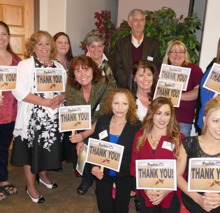 CSU President Amy Parsons and Rhonda Fields are part of the happy group celebrating the $10,000 donation from Sean “Ranch” Lough Foundation.
