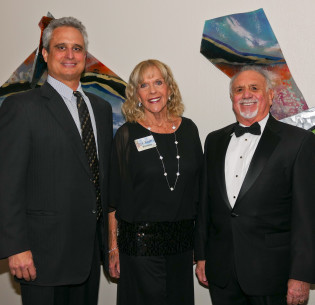 - Flamingo event chairs Stephanie and Dan Zilberman, and John Mahedy. Cathy Miller photo.